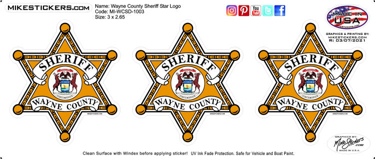 Wayne County Sheriff Star Logo x 3 Price: $5.00 Size: 3 x 2.65 Code: MI-WCSD-1003