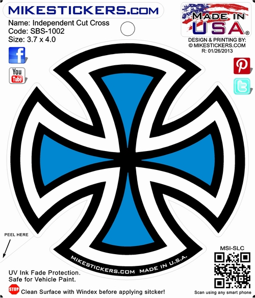Represent yourself by showing your brand loyalty to Independent Skateboards with a rad decal. Stick it on your skateboard deck, skate helmet, notebook, or even your mom's car (trust us-she'll dig it)!  The dopest graphics and color selection that will most definitely separate you from the rest!